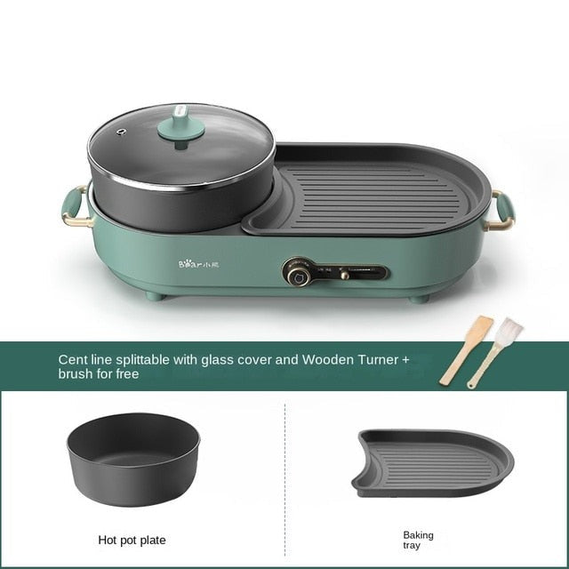 1* 2 In 1 Barbecue Hot Pot Electric Oven for Home Smokeless Multi Cooker
