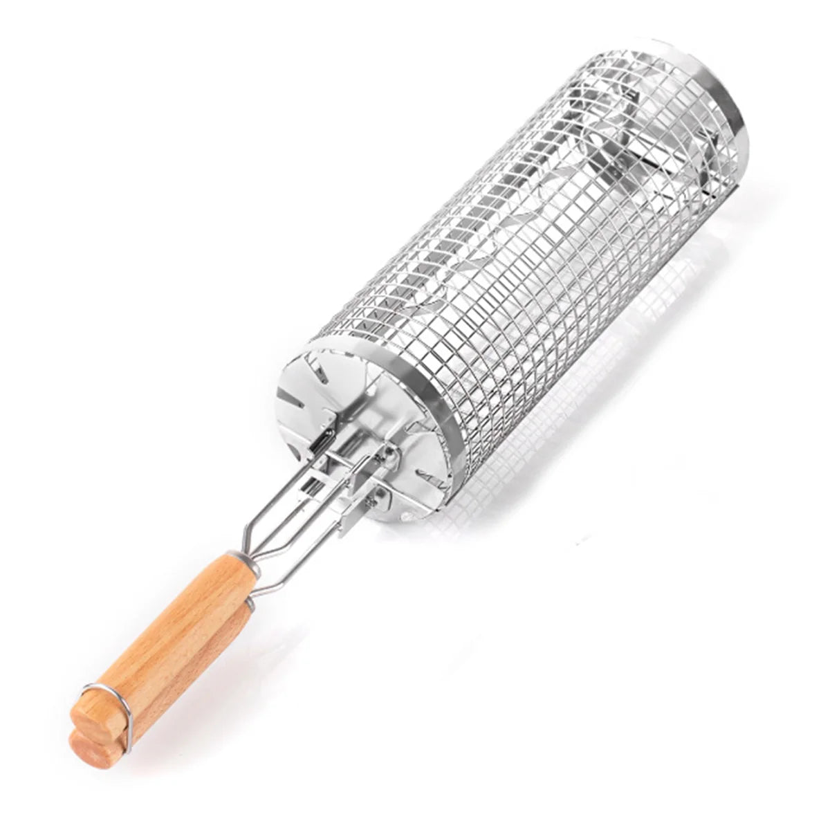 Portable Stainless Steel Rolling Grilling Basket BBQ Grill Accessory