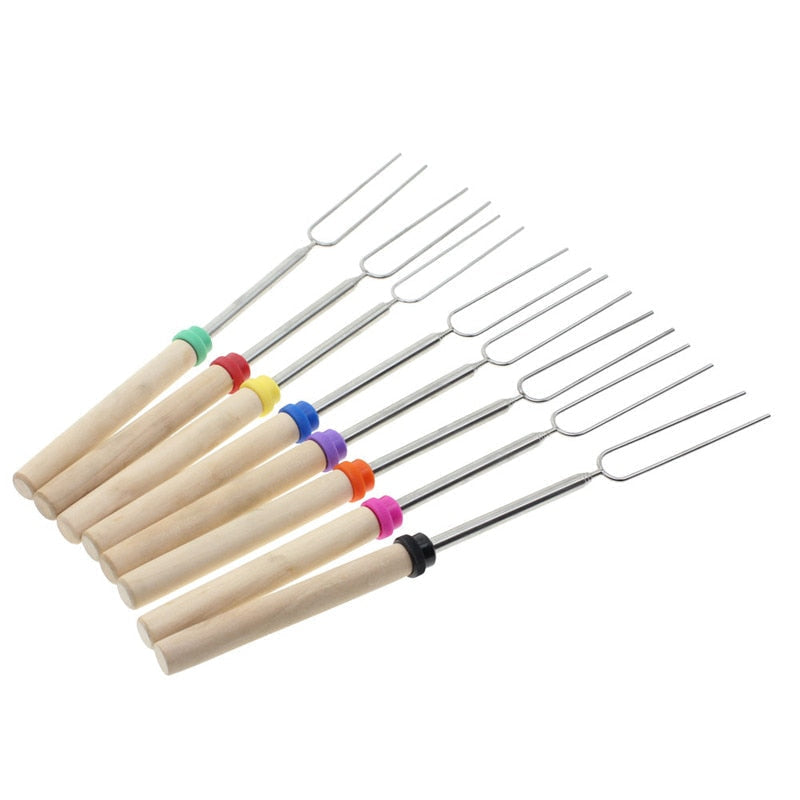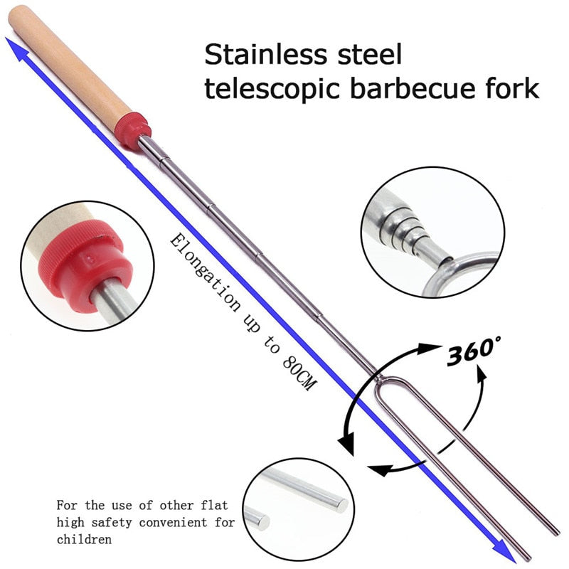 Stainless steel Wooden Handle Adjustable BBQ Fork Skewer