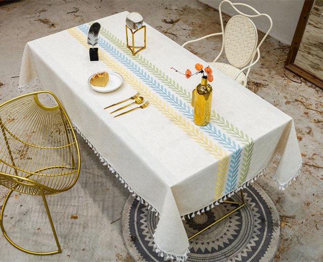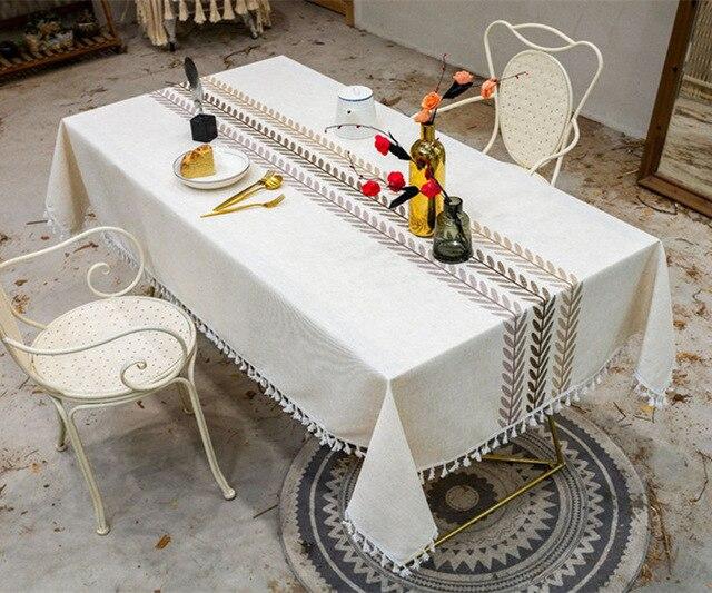 1*Embroidery Leaves Decorative Linen Tablecloth With Tassel