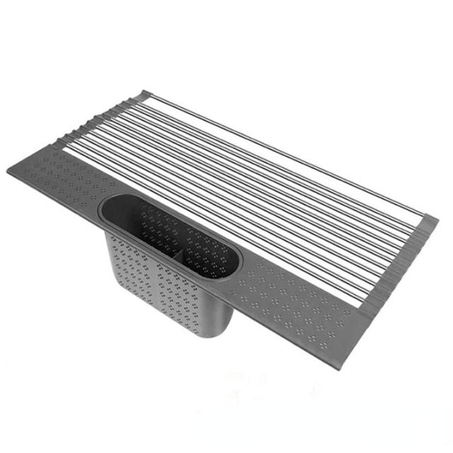 Foldable Roll Up Dish Drying Rack for Kitchen Sink Stainless Drainer