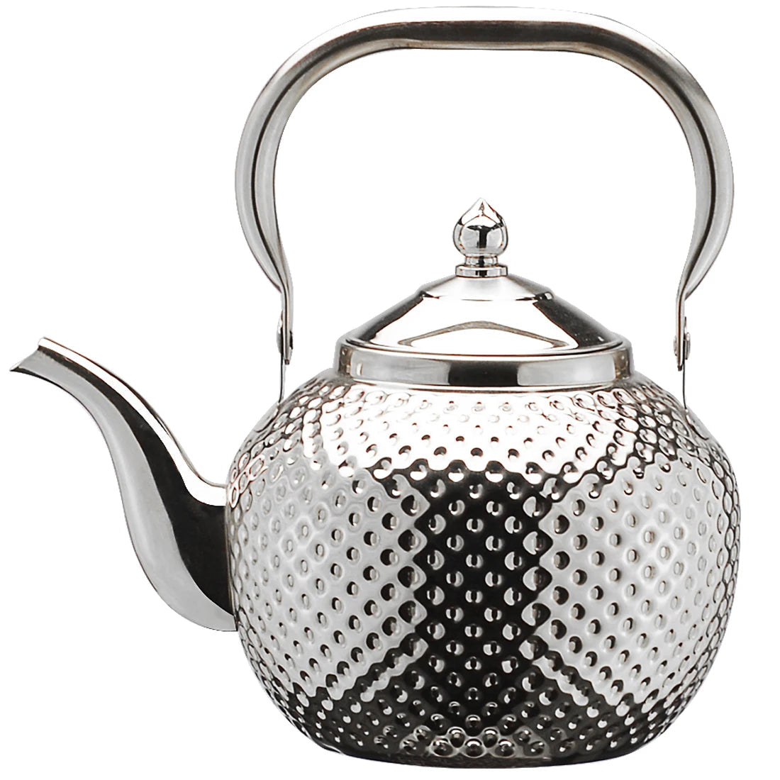 This Kitchen Groups Stainless Steel Stove Top Kettle Restaurant Teapot features a built-in removable infuser for brewing loose-leaf tea, and a heat-resistant ergonomic handle for safe and comfortable pouring. Stylish and functional, it combines convenience with elegant design.
