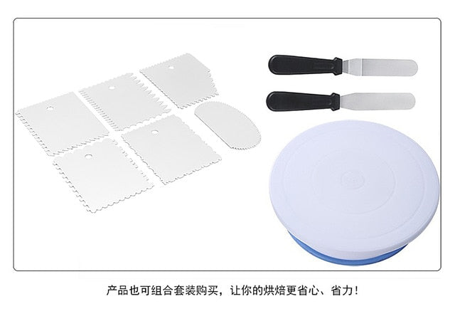 The Kitchen Groups Cake Turntable Stand Rotating Stable is a great accessory for your kitchen. These Cake Decoration accessories are made of high-quality material and are sturdy enough to hold a variety of cake tiers. You can rotate the turntable both clockwise and counterclockwise so you can decorate the cake flawlessly.