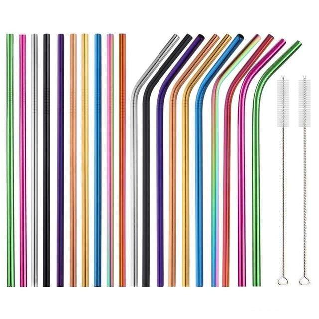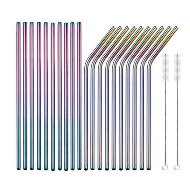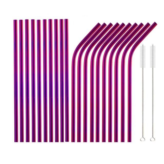 Colorful Stainless Steel Straw Eco-friendly Reusable Bent Straws Set