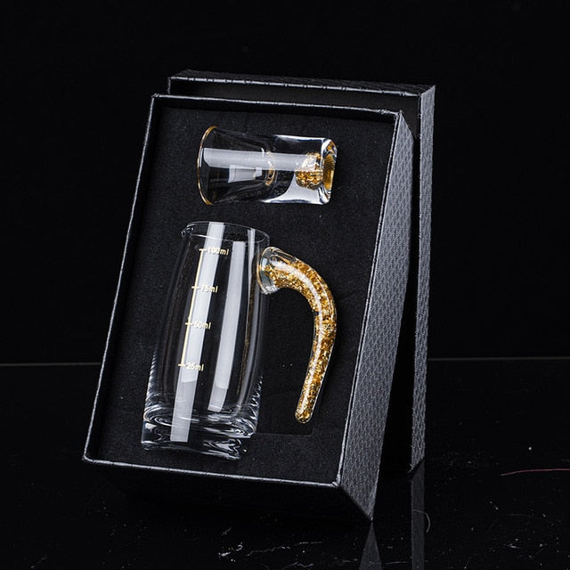 1*Crystal Liquor Spirits Shot Glass Box Gold Thick Bottom Wine Glasses