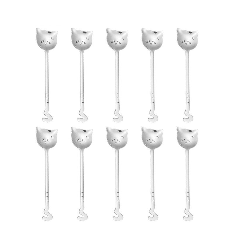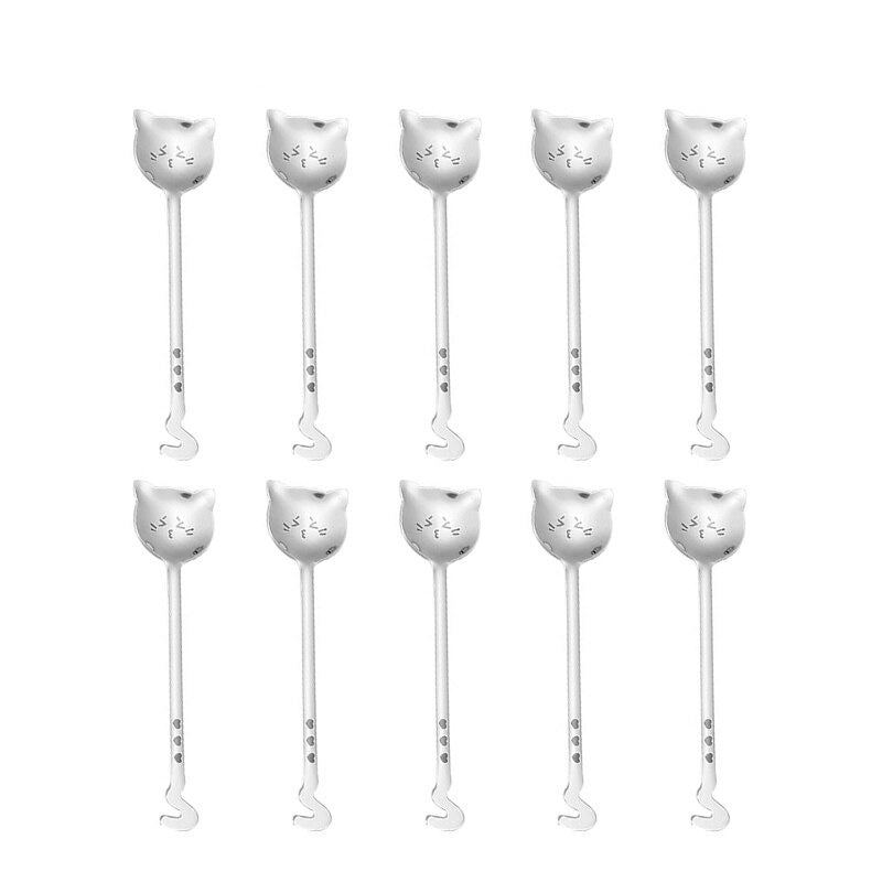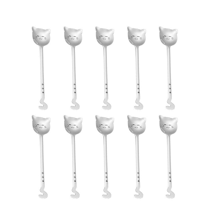 10pcs Cute Cat Coffee Spoon Cat spoon Teaspoon Long Handle Flatware