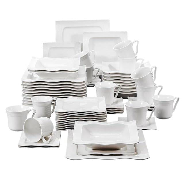 Enjoy style and quality in the home with this Kitchen Groups 30/60 Piece Porcelain Tableware Set Dinnerware Set for 12 Person. Designed for modern homes. It will make your family meals more enjoyable, healthy, and memorable. Give your home an instant makeover with this beautiful and elegant Dinnerware Set!