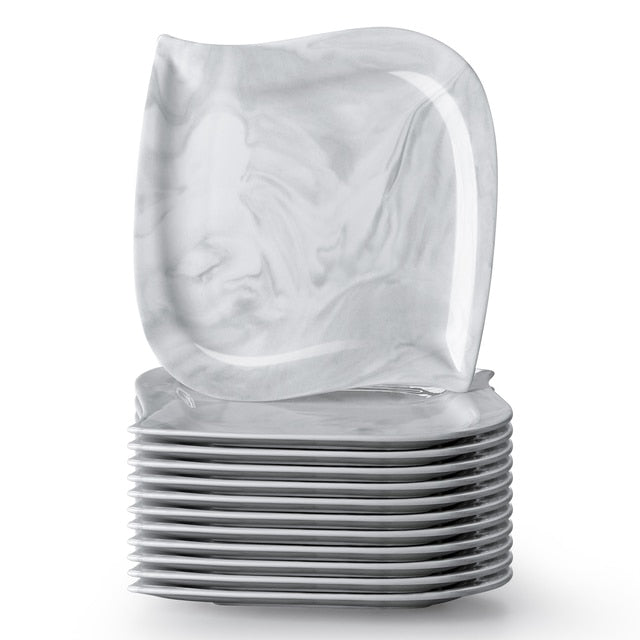 6pcs or 12pcs Marble Grey Porcelain Ceramic Dinner Plate Set