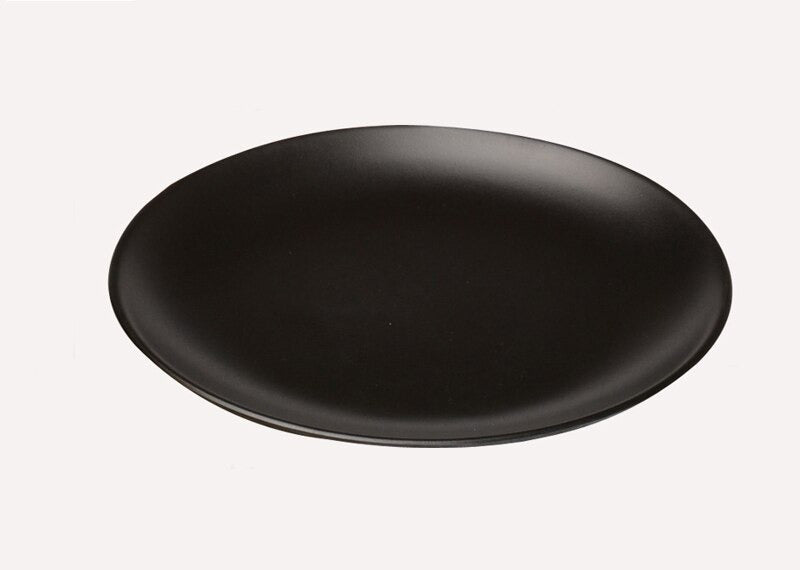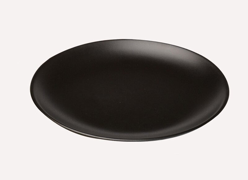 Black Melamine Round Tray Dinner Plate Dishes Food Steak Dinner Plates