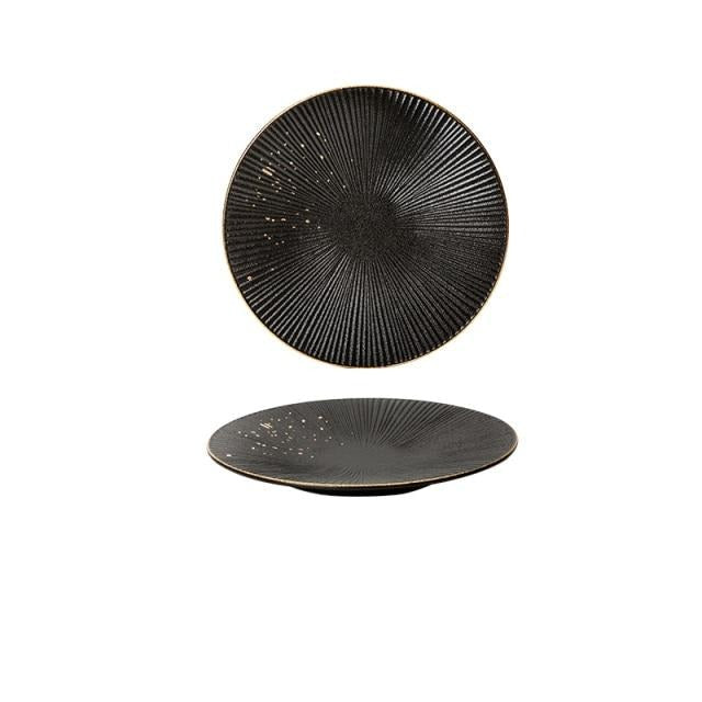 1*Ceramic Black Dinner Plate Golden Polka Dot Kitchen Tableware Set