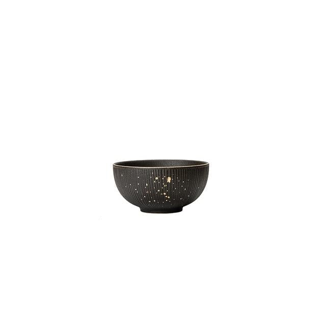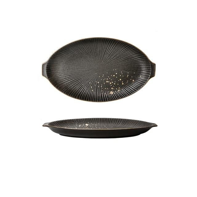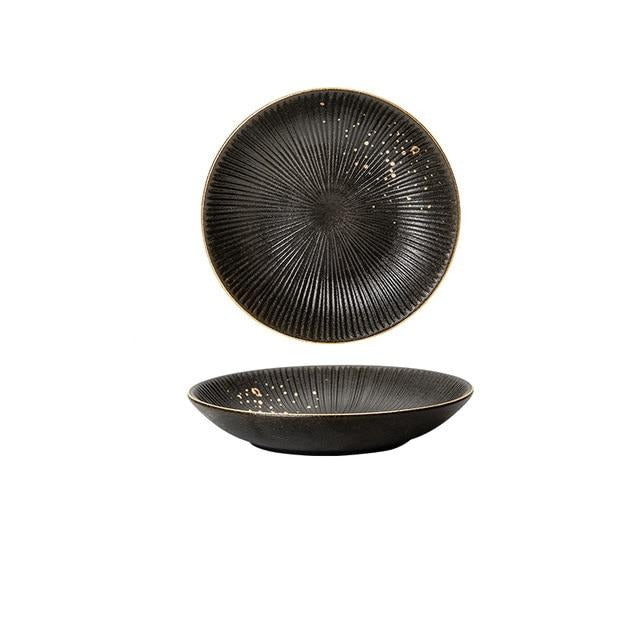 Ceramic Black Dinner Plate Golden Polka Dot Kitchen Tableware Set