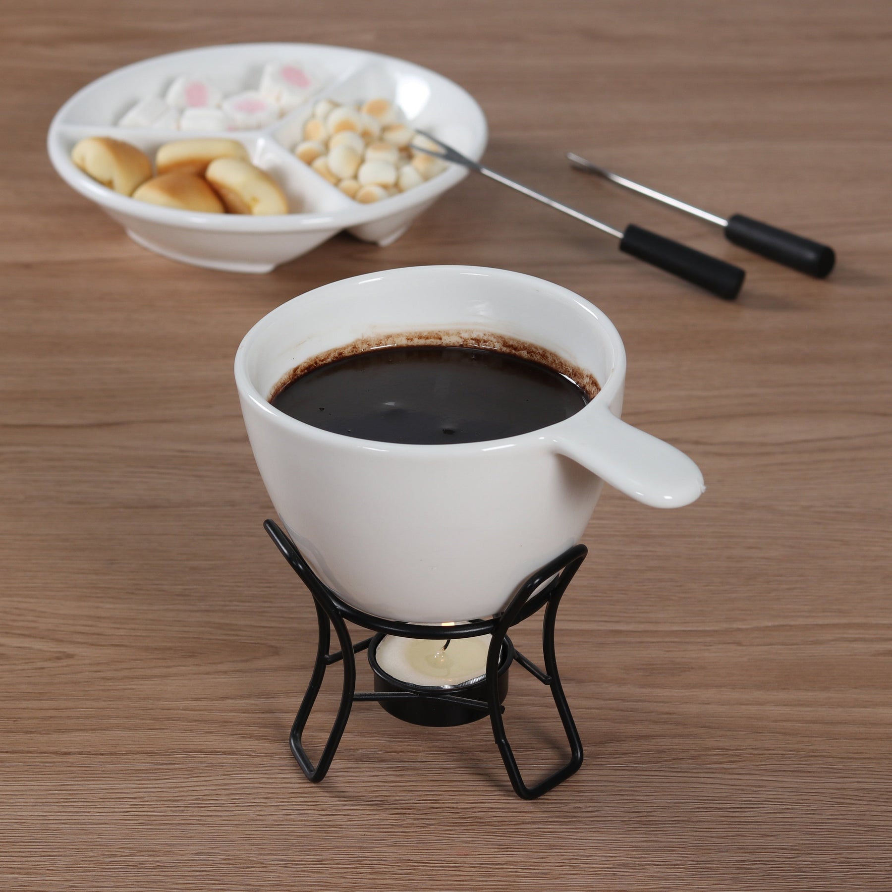 Ceramic Chocolate Melting Bowl With Handle, Metal Stand And Tealight
