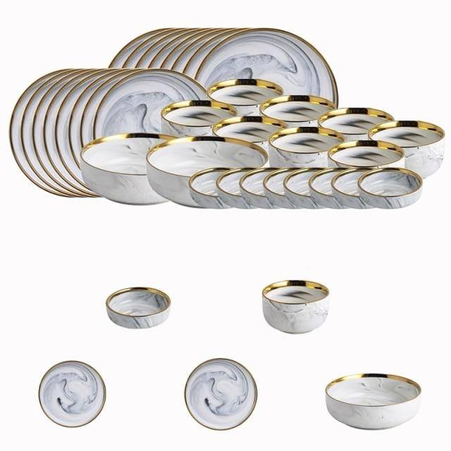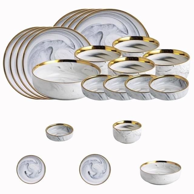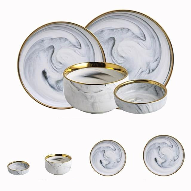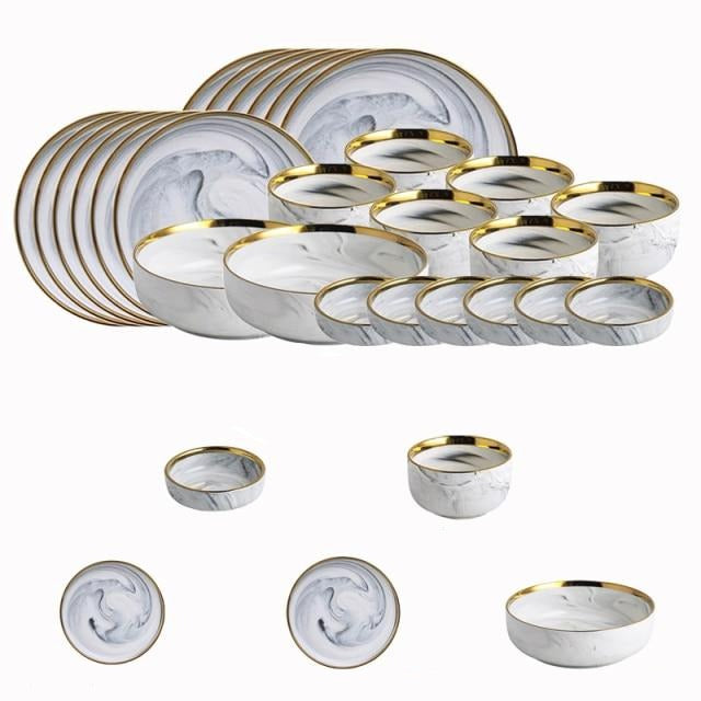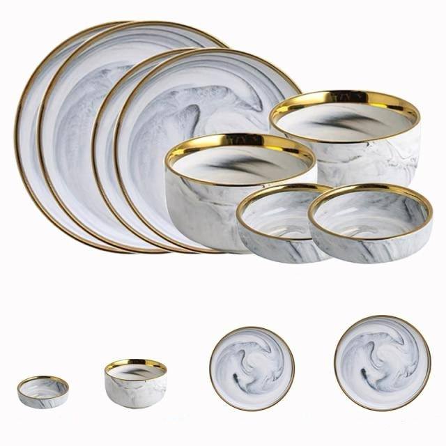 Ceramic Dinner Plates Set Dishes Marble Design Plate Dinnerware Set