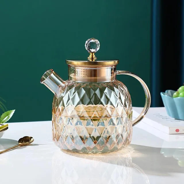 Glass Water Bottles Amber Color Home Flower Teapot Kettle Thermal Pot