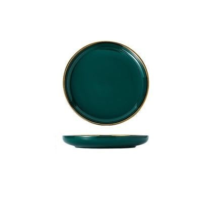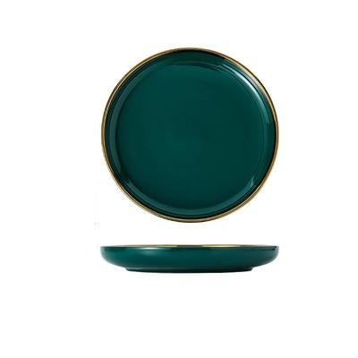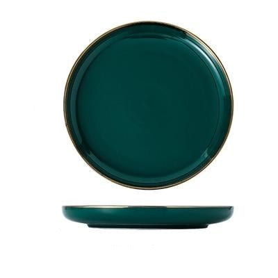 1*Green Ceramic Gold Inlay Plate Steak Food Plate Nordic Style Tableware