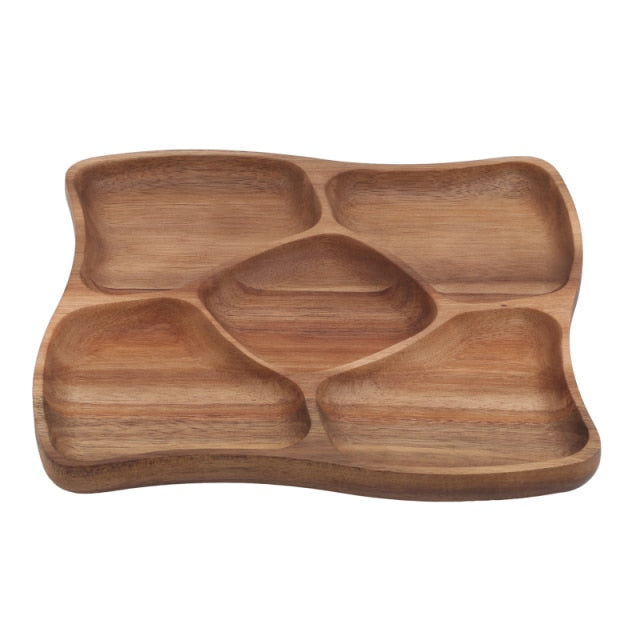 Irregular Oval Solid Wood Pan Plate Saucer Tableware Set
