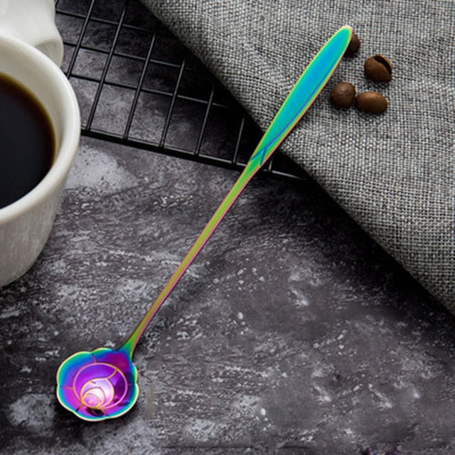 Durable and sturdy, these Long Handle Flowers Heart Shape Coffee Spoon Kitchen Drink Tableware are perfect for serving coffee, tea, or other hot drinks. Made of stainless steel with a shiny finish, these Kitchen Groups durable spoons are built to last. The long handle makes it easy to serve without straining your wrist.