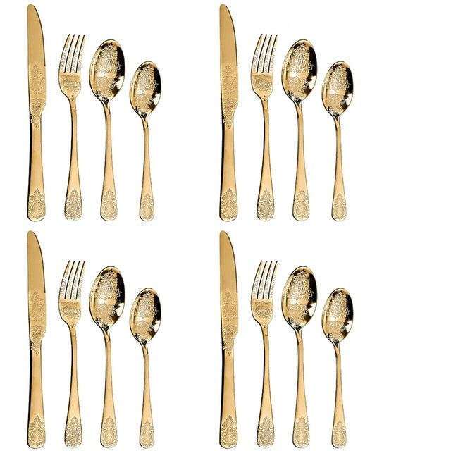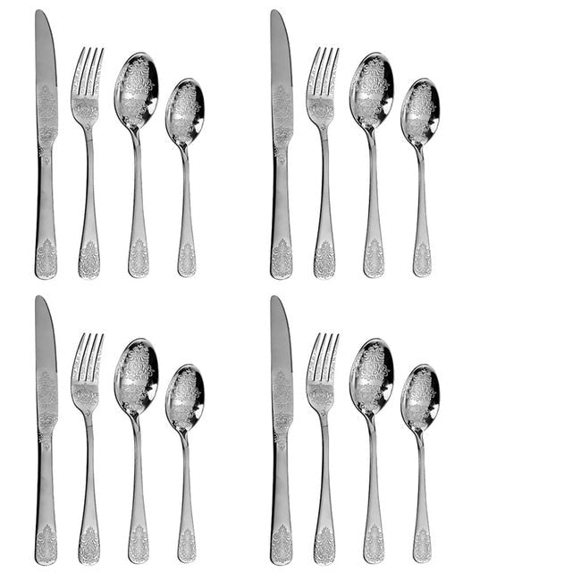 Luxury Cutlery Sets Silverware Kit Vintage Carved Tableware Set
