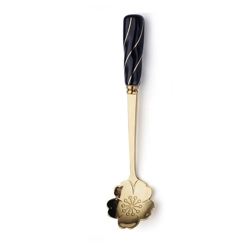 1* Mixing Spoon With Ceramic Handle Flower Shape Dessert Spoon Tableware
