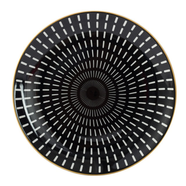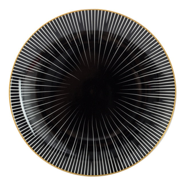 Round Strip Ceramic Dinner Plate Dish Dessert Plate Snack Plate