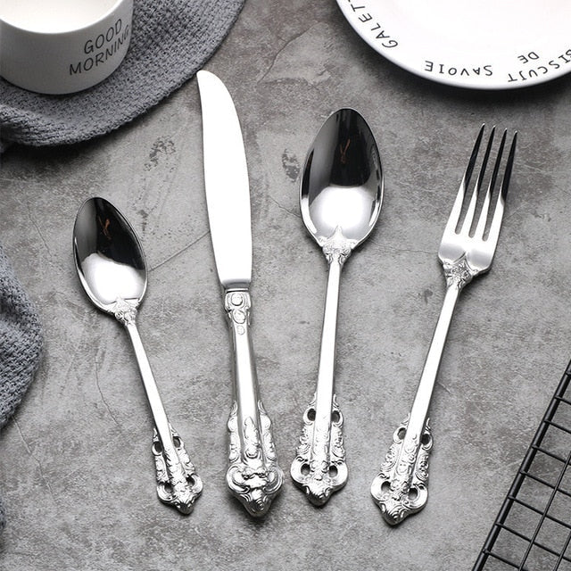 Elegant Stainless Steel Royal Cutlery Set In Gold Or Silver Finish