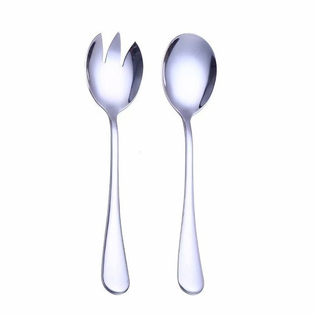Eat salad in a modern, more stylish way. These stainless steel salad utensils are designed to let you cut and scoop up snack-able portions of vegetables and fruit, without needing a knife, fork, or plate. This Kitchen Groups salad set provides all the tools needed to enjoy a range of healthy, flavorful salads.