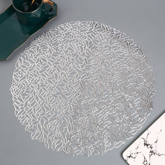 1*Table Mat Bronzing PVC Placemat Hollow Insulation Coaster Pads