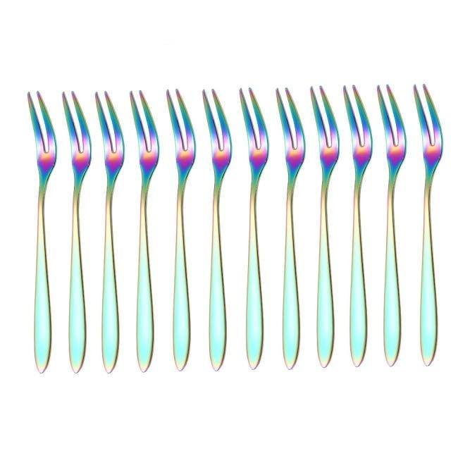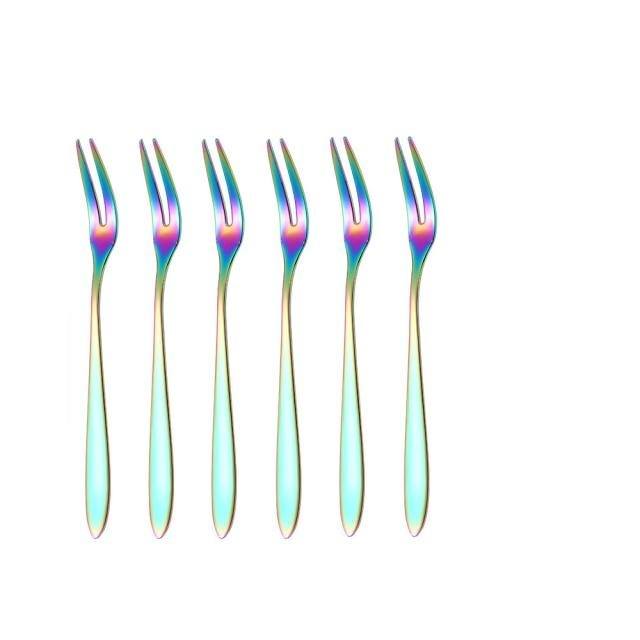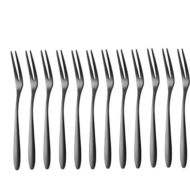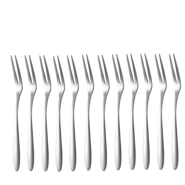 Forks are essential pieces in silverware sets. We designed this Two-tine Fork Fruit Fork set Tableware Multiple Snack Dessert Forks with the highest quality stainless steel! Lunchtime will never be the same again when you make eating fun for yourself and your kids! An exclusive item from Kitchen Groups.