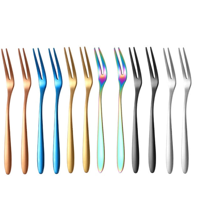 1* Two-tine Fork Fruit Fork set Tableware Multiple Snack Dessert Forks