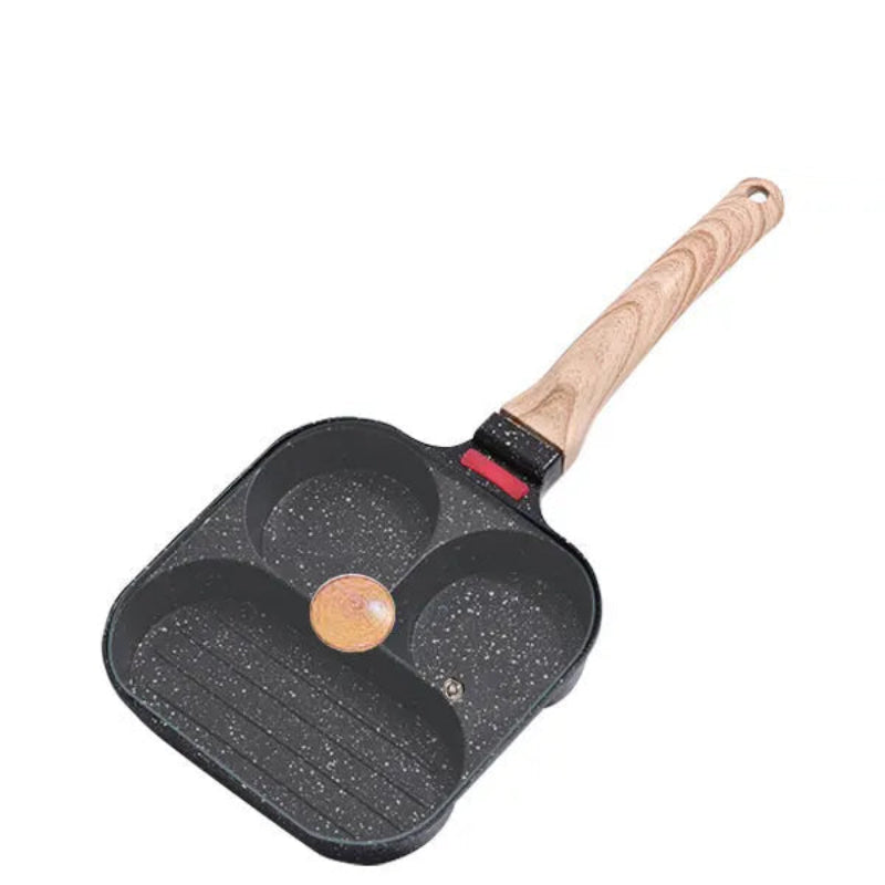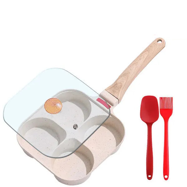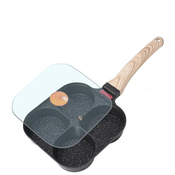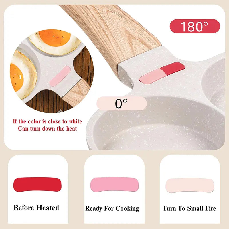 Innovative 3/4-Cup Design: Standing out from ordinary frying pans, our 3/4-cup egg pan allows simultaneous cooking of four eggs, burgers or different types of food, effectively catering to your family's diverse breakfast preferences.