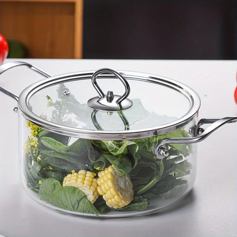 1* Borosilicate Glass Cooking Pot with Lid Heat-Resistant Simmer Pot