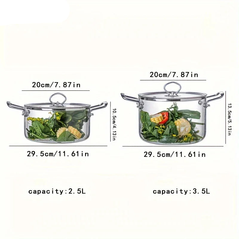Borosilicate Glass Cooking Pot with Lid Heat-Resistant Simmer Pot