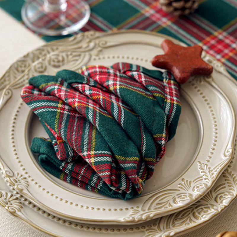 European Checkered Cloth Napkins Set Thick Reusable Table Napkins