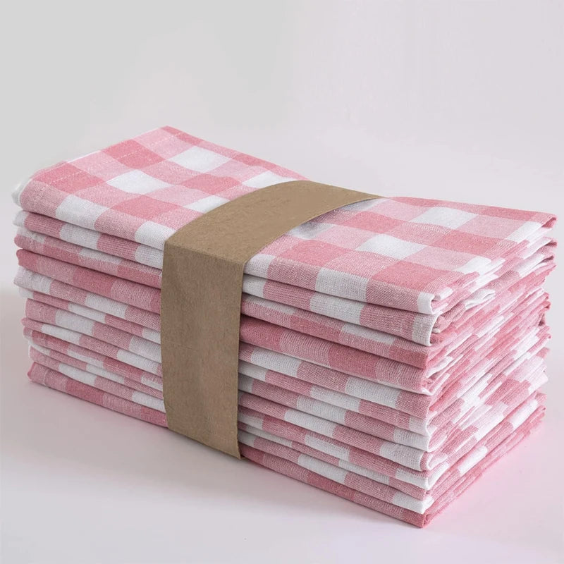 Pink Checkered Cloth Napkins Polyester Washable Table Dinning Napkins