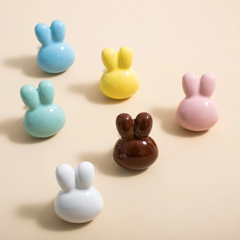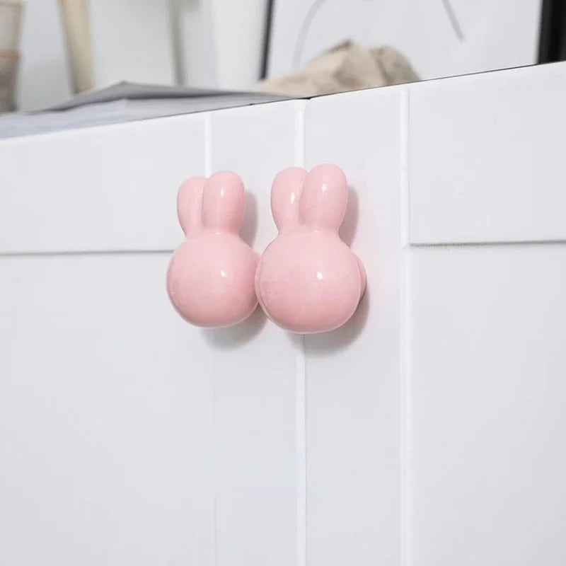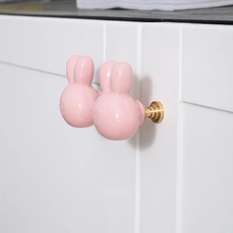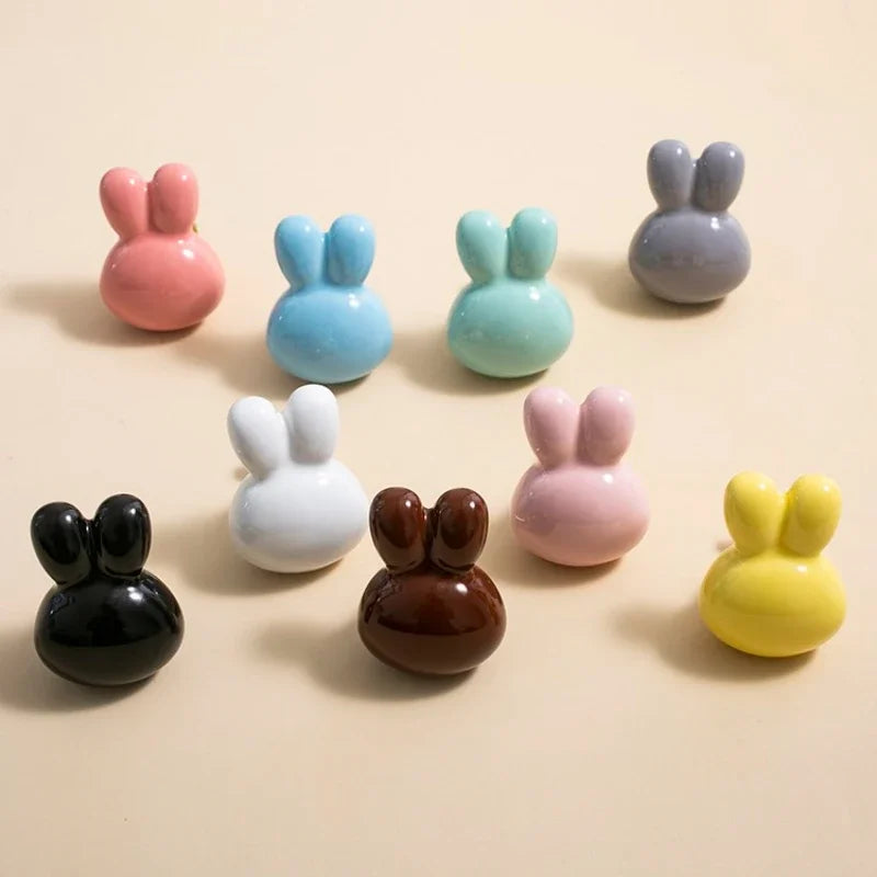 Bunny Cabinet Knobs Cute Ceramic Drawer Pulls Handles for Kids Room