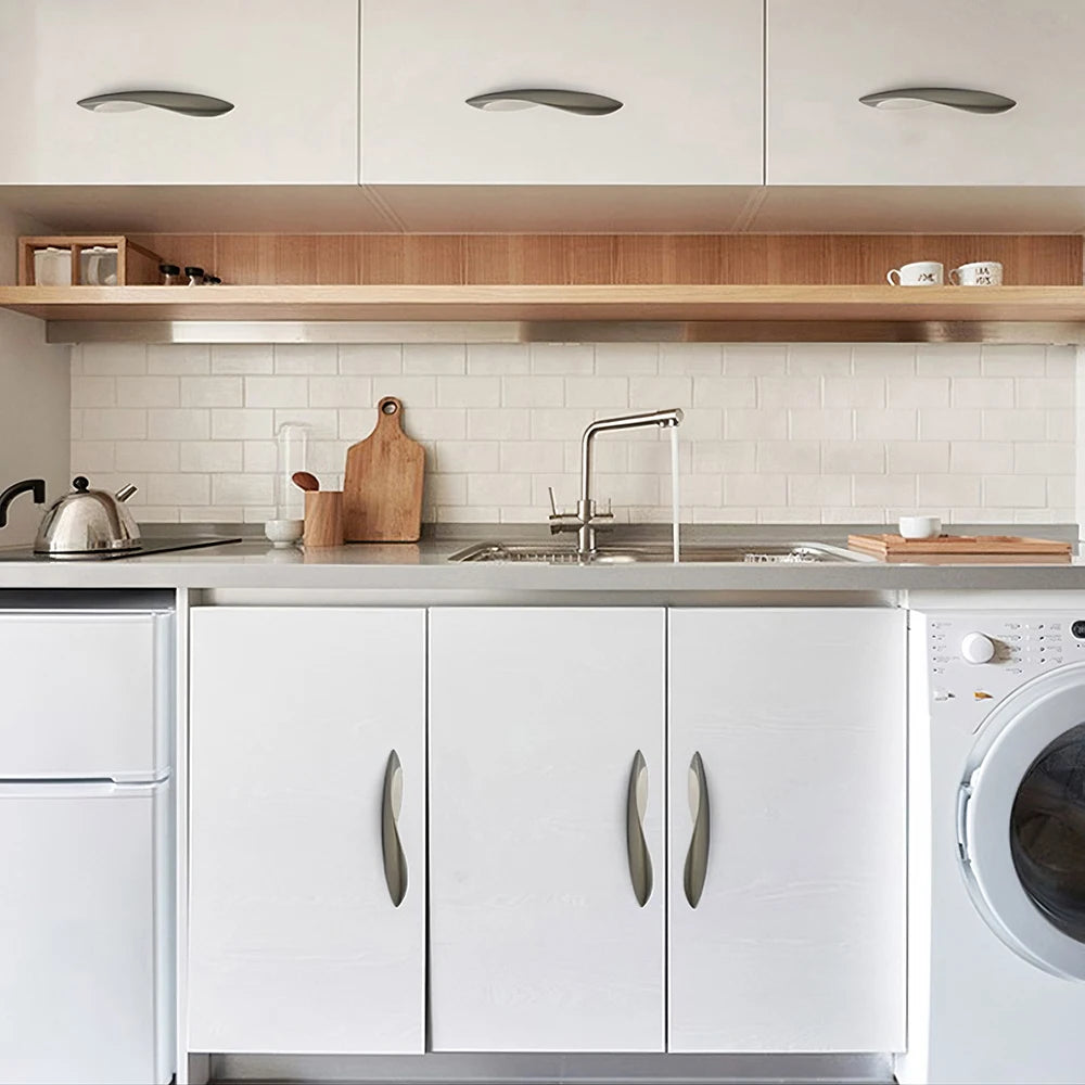 Upgrade your home interiors with these Irregular Curve Cabinet Door Handles and Knobs Kitchen Drawer Pulls from Kitchen Groups, designed to bring a clean, modern look to kitchen cabinets, drawers, wardrobes, and furniture doors. Crafted from high-quality zinc alloy, these pulls offer excellent durability, corrosion resistance, and a comfortable grip for everyday use.