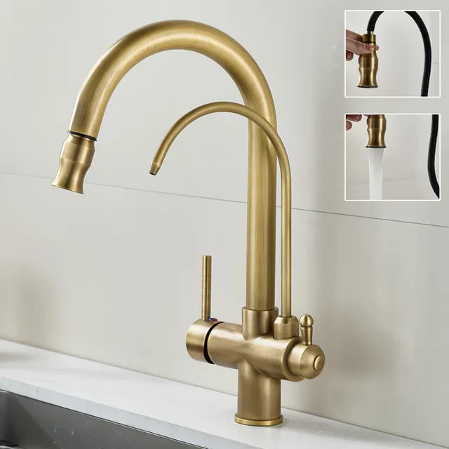 Pull Out Kitchen Faucet Solid Brass Crane Kitchen Deck Mounted Tap