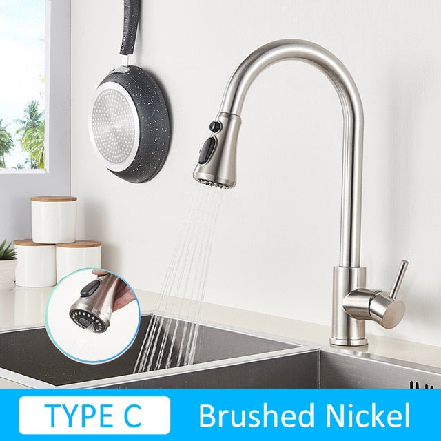 This Kitchen Groups Stainless Steel Pull Out Kitchen Faucet Sink Water Tap is made of high-quality metal, durable, and long-lasting to use. This is a single-handle mixer tap designed with modern aesthetics, featuring perfect ergonomics to meet your need for smooth operation.