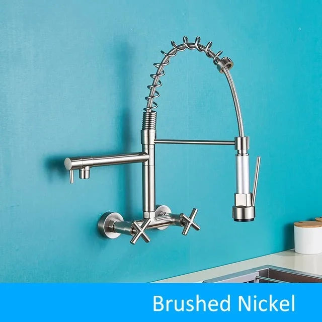 Wall Mounted Kitchen Faucet Kitchen Pull Down Spray 360 Rotation Tap