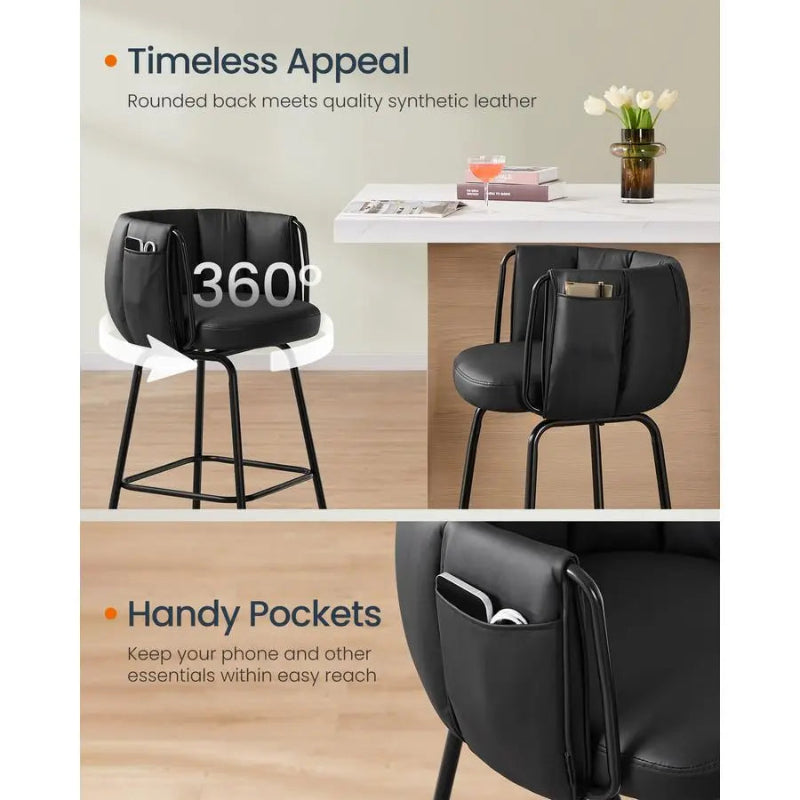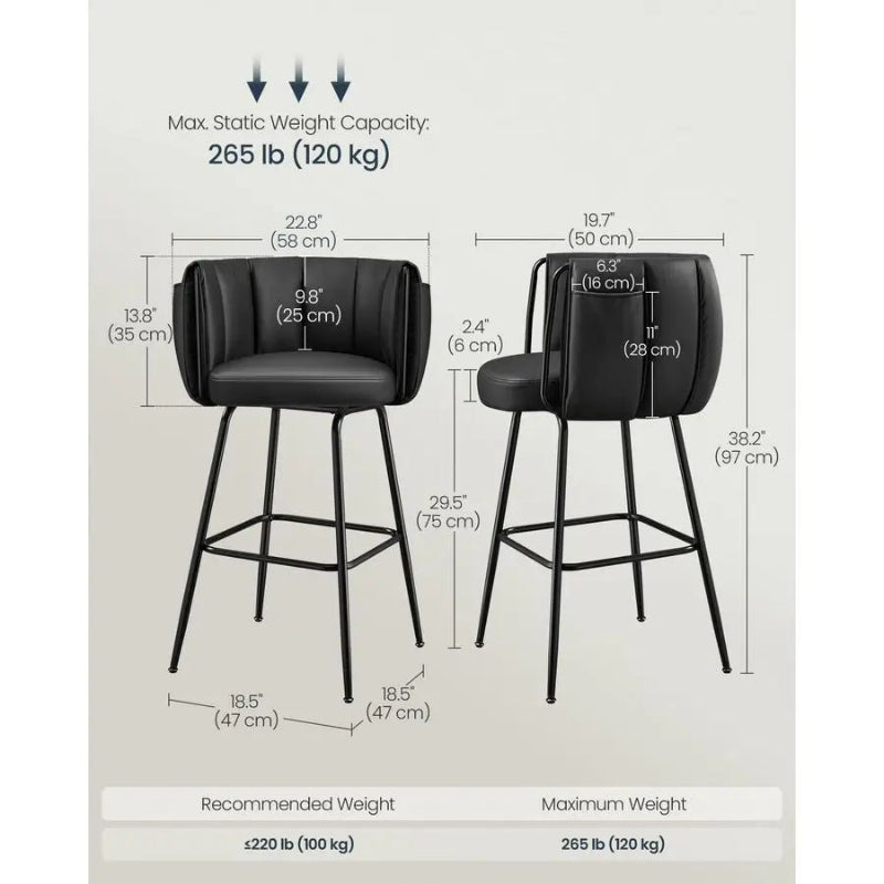 - Set of 2 Bar Stools: Perfect for home kitchens and counters