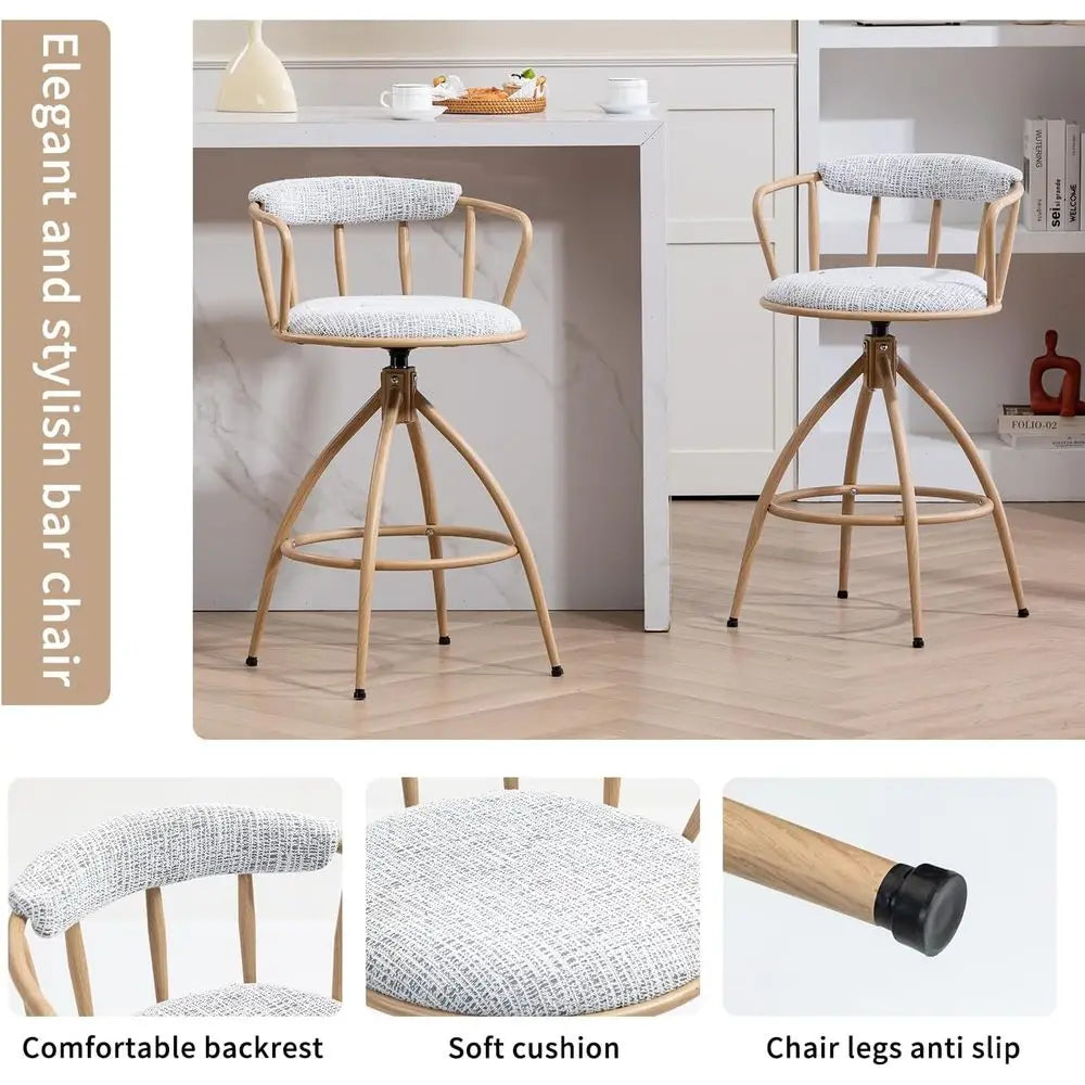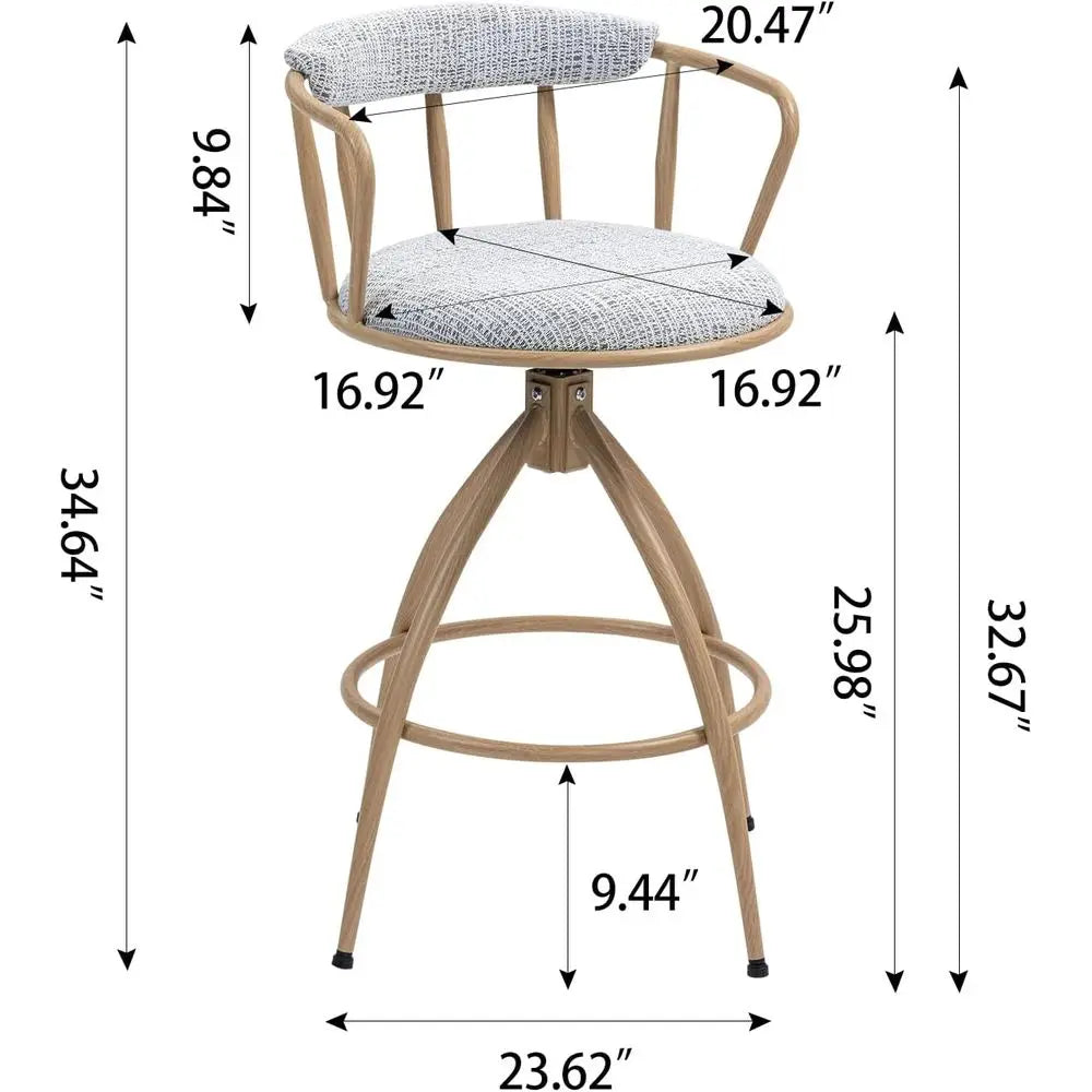 • Premium Upholstered Fabric for Durability and Style These swivel bar stools are upholstered in a soft, textured fabric that’s not only breathable and skin-friendly but also resistant to daily wear. The durable covering ensures your bar chairs maintain their inviting look and feel for years of use.