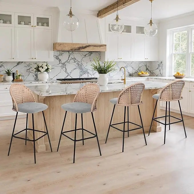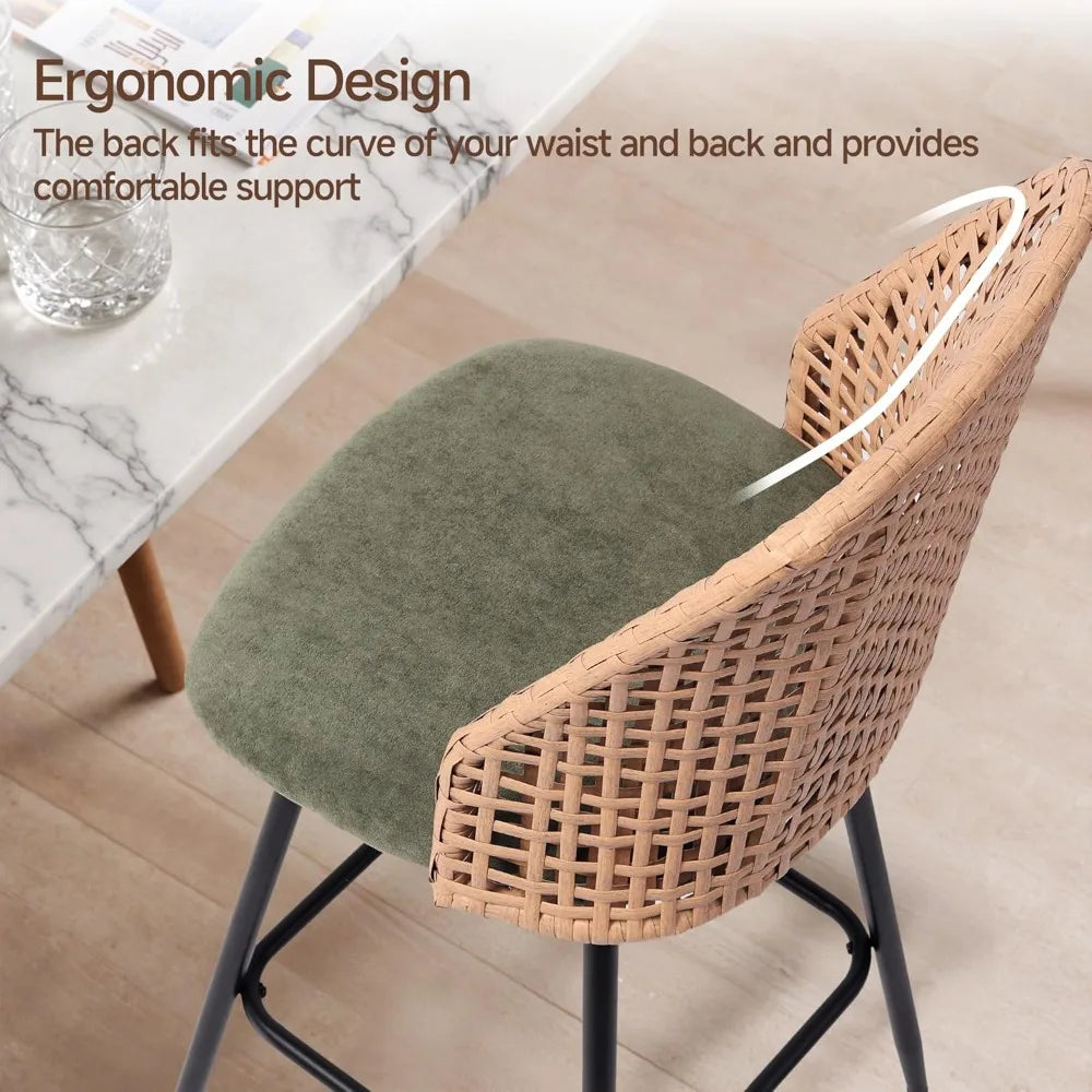 - Ergonomic Design Rattan Bar Stools: The rattan backrest of this counter stools combines naturalness and beauty; its ergonomic low backrest design provides more comfortable lumbar support, ensuring long-lasting comfort for everyday use