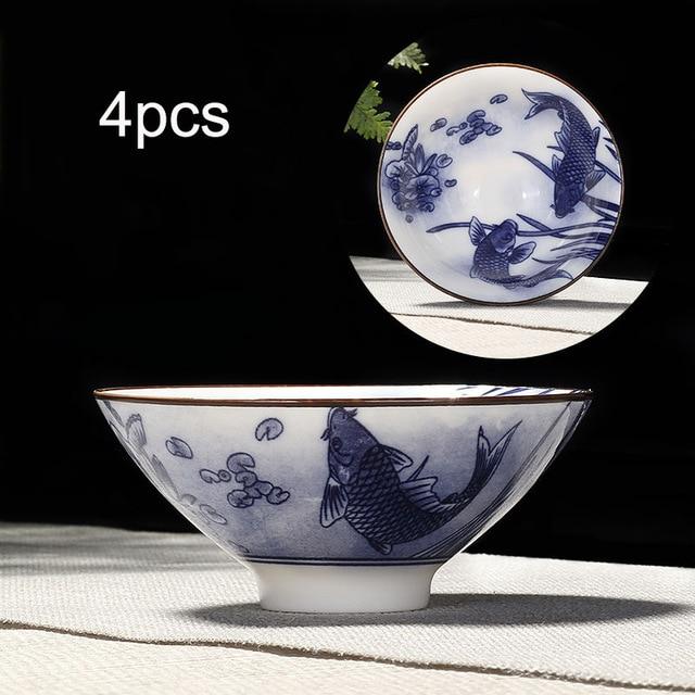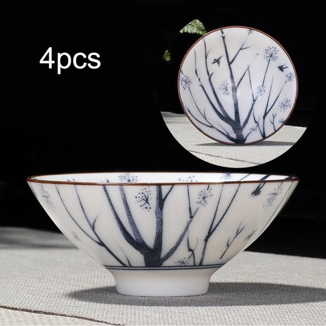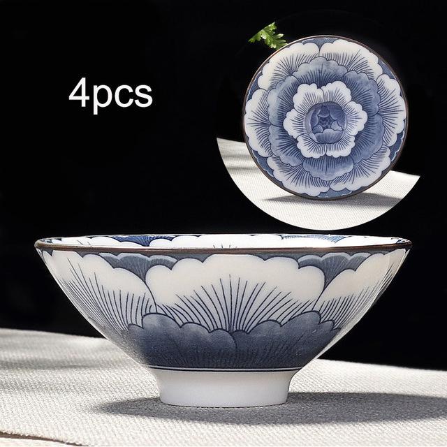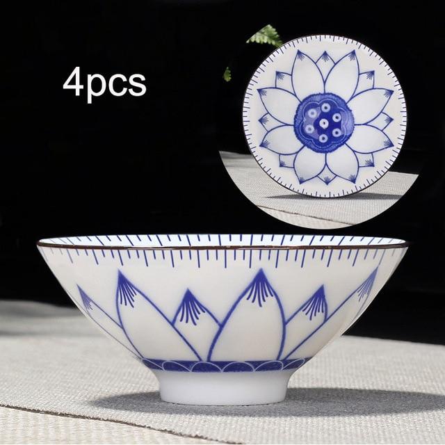 4pcs Blue and White Porcelain Teacup Set