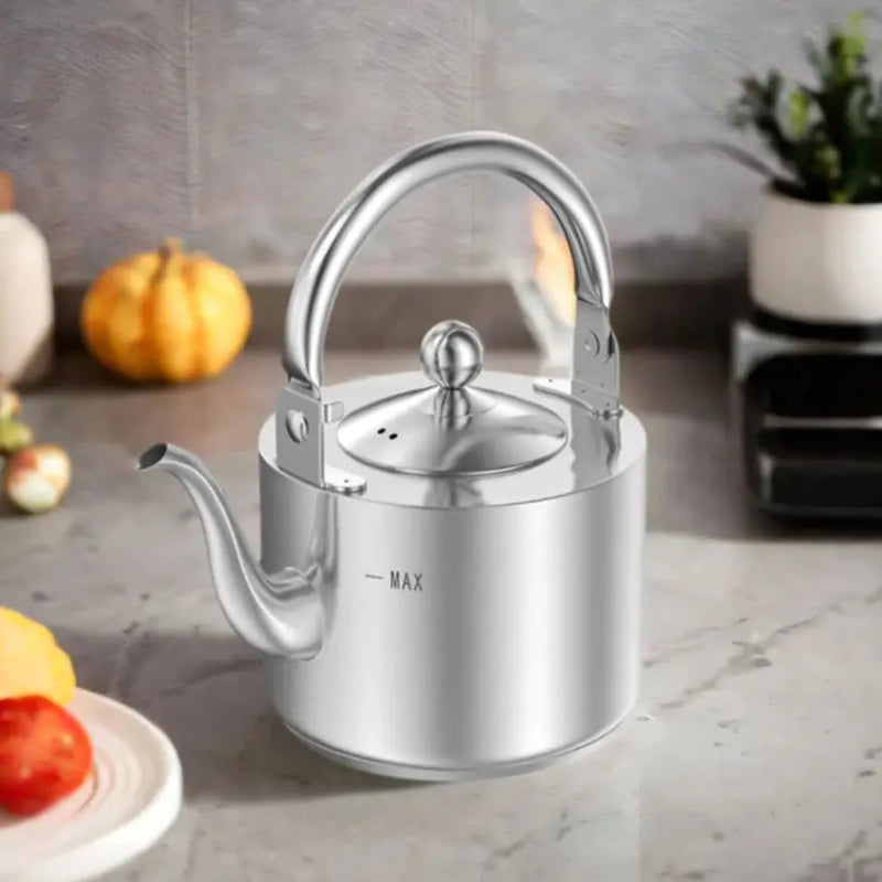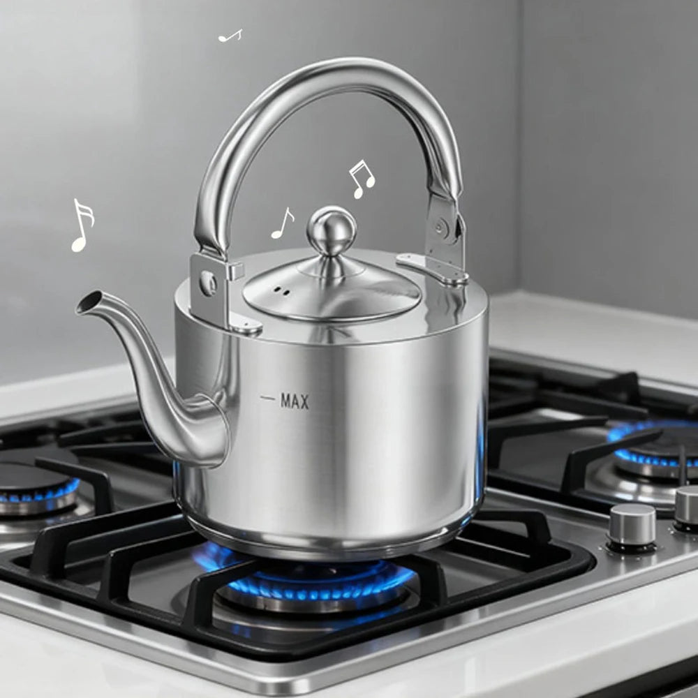 Enjoy reliable performance and classic design with the Stainless Steel Whistle Kettle with Tea Strainer Water Kettle Teapot from Kitchen Groups. Crafted entirely from high-quality stainless steel, this teakettle offers excellent durability, rust resistance, and fast, even heating.