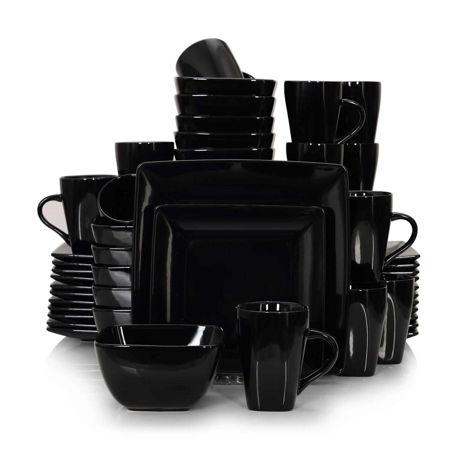 16/32/48pcs Solid Color Black Ceramic Porcelain Square Dinnerware Set