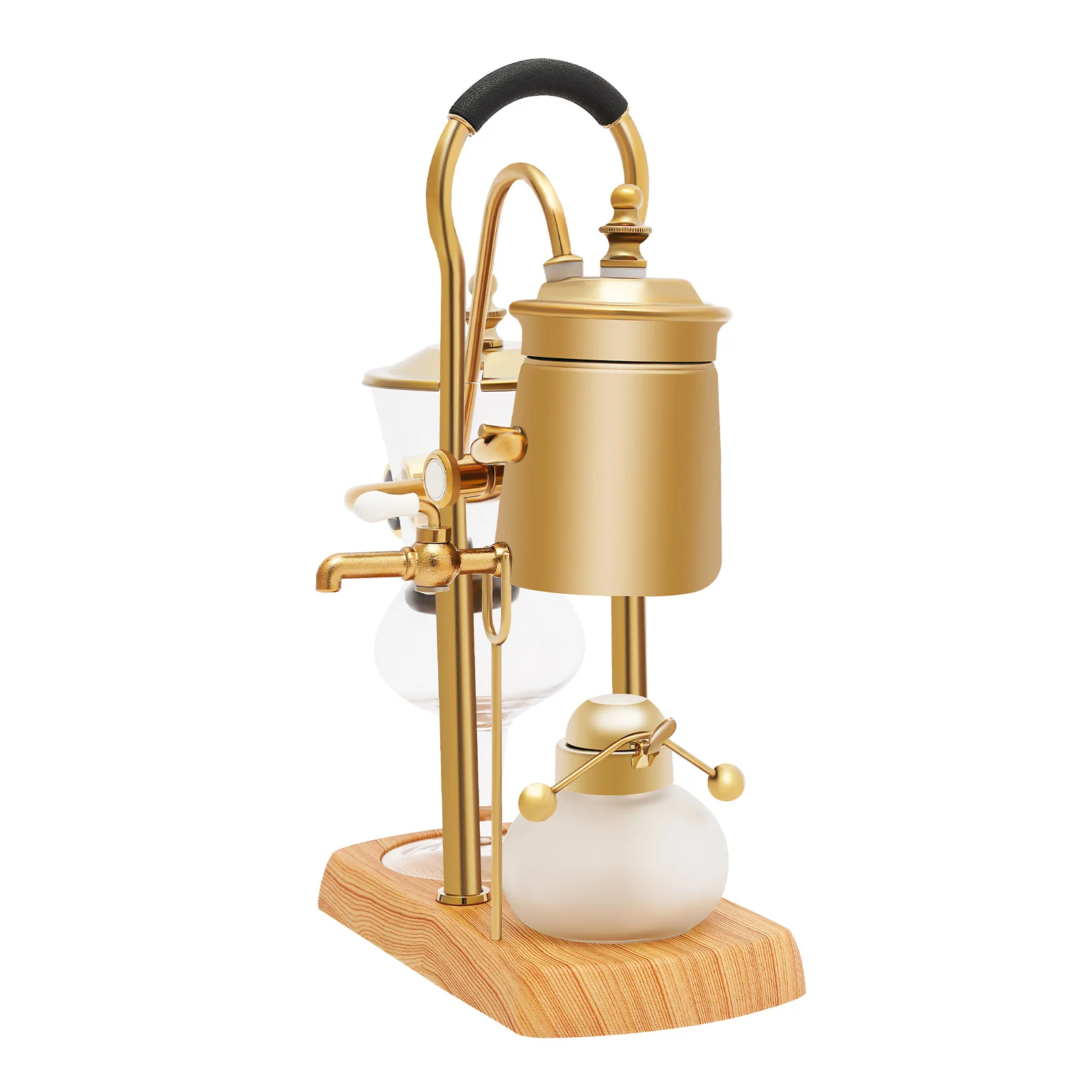 Brew coffee the classic way with this stunning Vintage Syphon Coffee Maker Manual Stovetop Brewer with Leather Handle from Kitchen Groups, designed for coffee lovers who appreciate both craftsmanship and exceptional flavor. With its elegant gold retro style, heat-resistant glass chambers, and leather-like handle, this siphon brewer brings a touch of luxury and theatre to your coffee ritual. Perfect for home baristas and coffee enthusiasts searching for a smooth, aromatic, and full-bodied cup.