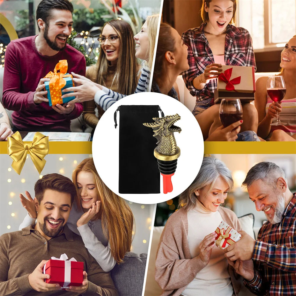 Wine Pourer and Stopper Dragon Decoration Champagne Vacuum Seal