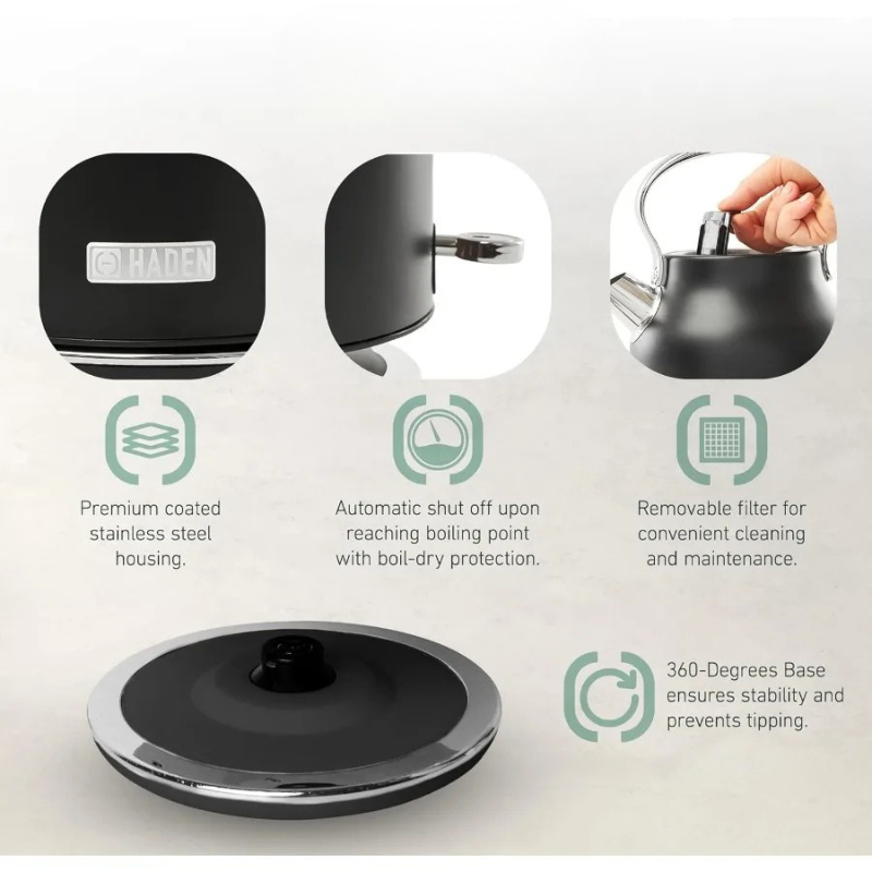 - Automatic Shut-Off & Boil-Dry Protection: Smart safety system automatically powers off when the water reaches boiling or when the kettle is empty, preventing accidents and prolonging lifespan.
