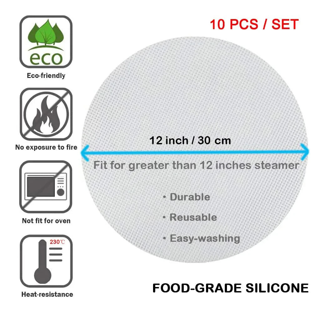 1* 10Pcs Silicone Round Steamer Liners Non-stick Reusable Dehydrator Mats