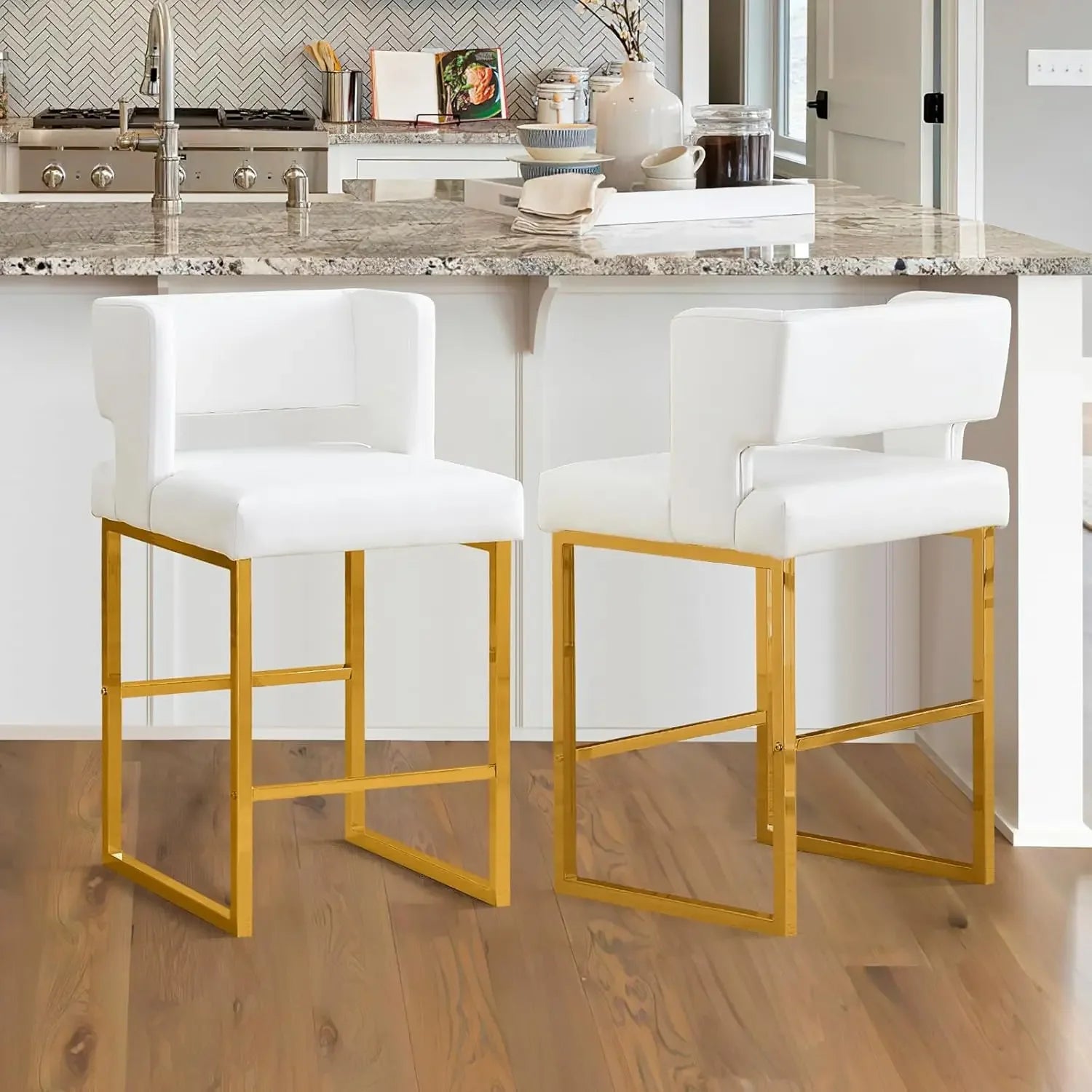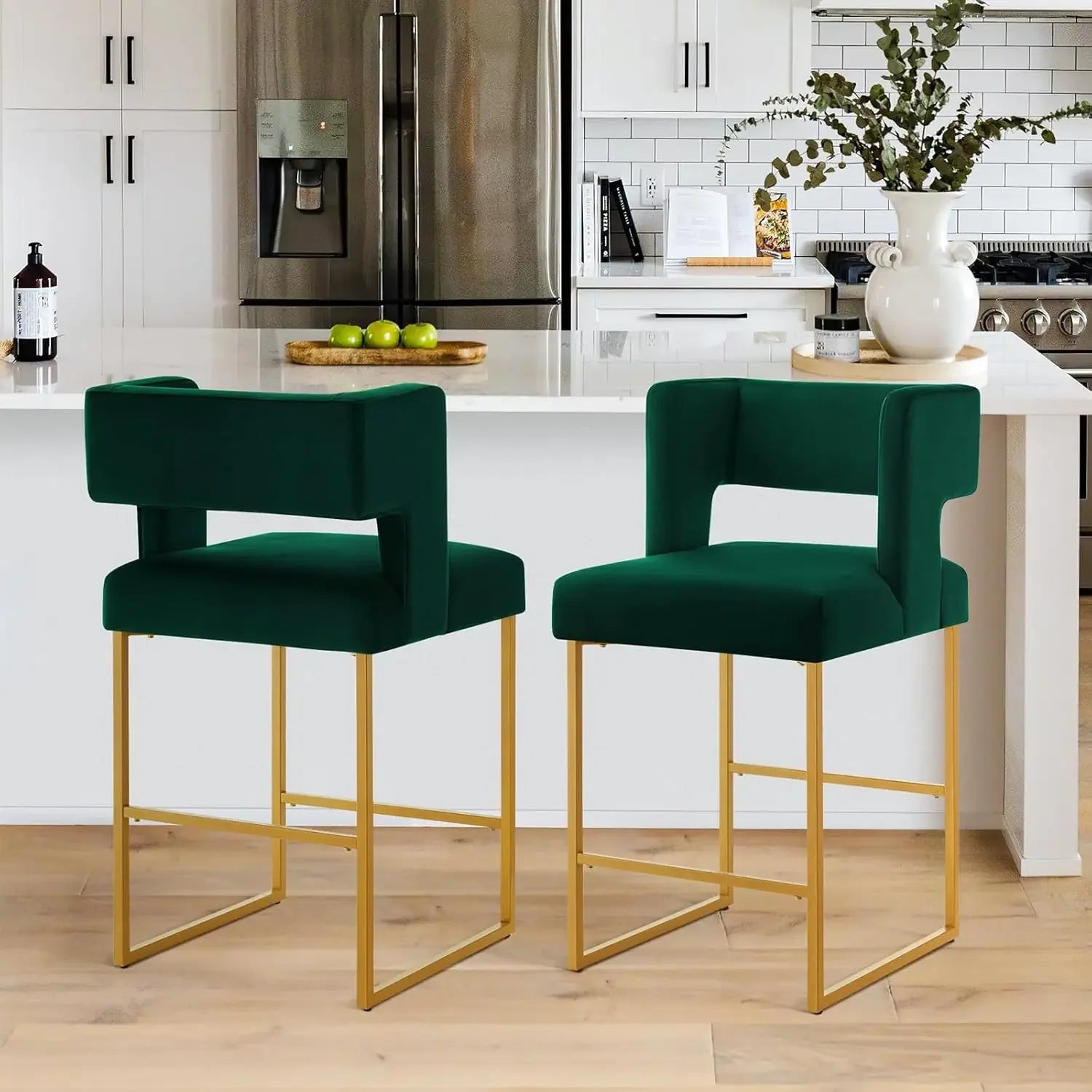 Modern Velvet Bar Stools with Square Open Backrest Gold Metal Frame